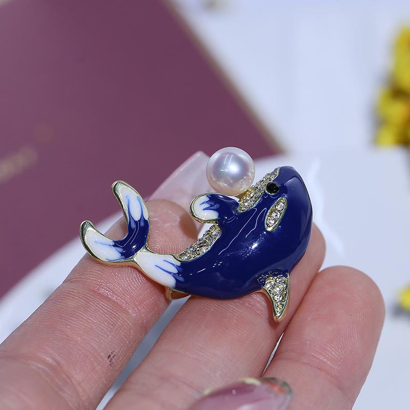 Modne broszki z emalią w kolorze perłowo-niebieskim w kształcie delfina z przypinką dla kobiet, akcesoria do odzieży, płaszcza, prezenty
