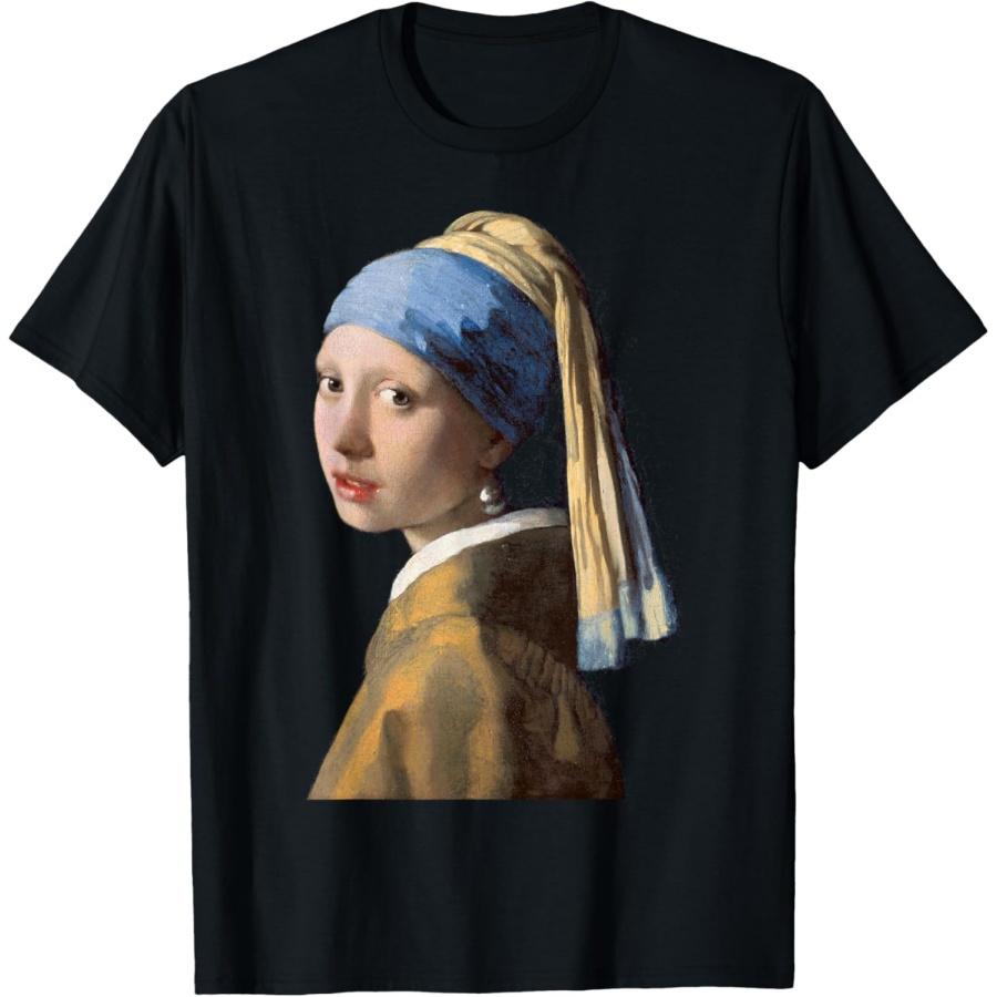 Arcydzieła Sztuki Dziewczyna z Perłą Kolczykiem Plakat Artystyczny Koszulka, Dla Dziewczynek Duże Dziecko, Unisex, Czarny, Mały, Krótki Rękaw, Klasyczny Krój