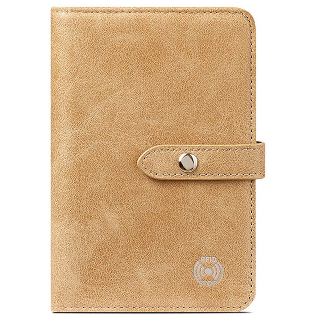 Etui na paszport RenLianyi Anti-Skimming, Składane na pół, Smukłe, Zapinane na zatrzask, Zintegrowany portfel z uchwytem na długopis, Lekkie i stylowe, Mieści 2 paszporty i 4 karty, Wysokiej jakości skóra PU z wielofunkcyjnymi kieszeniami do przechowywania, Idealne na podróże krajowe i międzynarodowe, Idealne jako portfel podróżny, etui na bilety lotnicze lub prezent na zagraniczną podróż służbową, Khaki