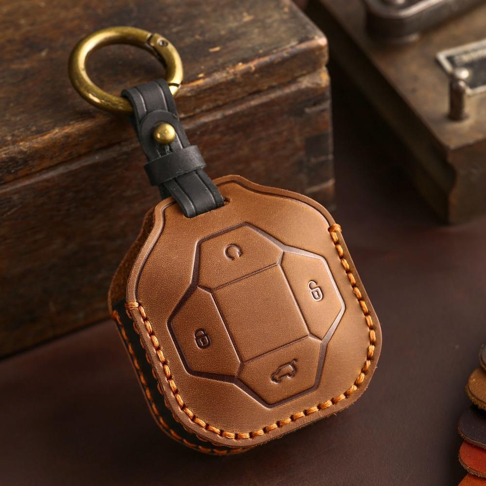 Genuine Leather Key Cover for Chery Jetour Traveller 4WD PRO Retro Handmade Car Key Protector