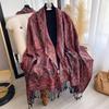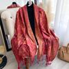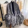 Damski Modny Zimowy Szalik z Sztucznego Kaszmiru Winylowy Wzór Z Frędzlami Gruby Ciepły Szal Pashmina Dwustronny Okrycie Zewnętrzne