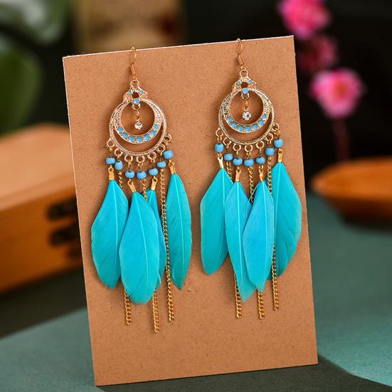 1 Pair Women Dangle Earrings Bohemia Style Ethnic Synthetic Feather Exquisite Lady Dangle Earrings Banquet Jewelry