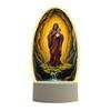 Its soft, warm glow creates a peaceful atmosphere ideal for prayer, meditation, or quiet reflection in bedrooms, offices, or home altars. The sturdy base ensures stability on nightstands or shelves, providing safe and reliable use as a gentle night light or meaningful decor piece. Perfect for enhancing any indoor setting with spiritual warmth and elegance.