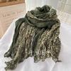 Autumn And Winter Retro Literary Cotton And Linen Pleated Thin Versatile Shawl Small Floral Scarf Yarn Japanese