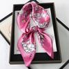 Luxury Pink Flower Pattern Long Narrow Silk Feel Scarf Shawl For Women Small Silk Scarf Lady Double-Sided Headband Accessories