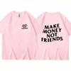 Zarabiaj pieniądze, a nie przyjaciele T-shirty z nadrukowanymi literami Moda Letnia odzież uliczna Hip-hopowa bawełniana śmieszna koszulka Casual T-shirt oversize