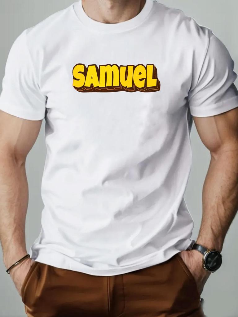 T-Shirt Men 100% Cotton English Letter Pattern SAMUEL Print Summer Round Neck Breathable Oversized Tee Casual Fashion Clothing