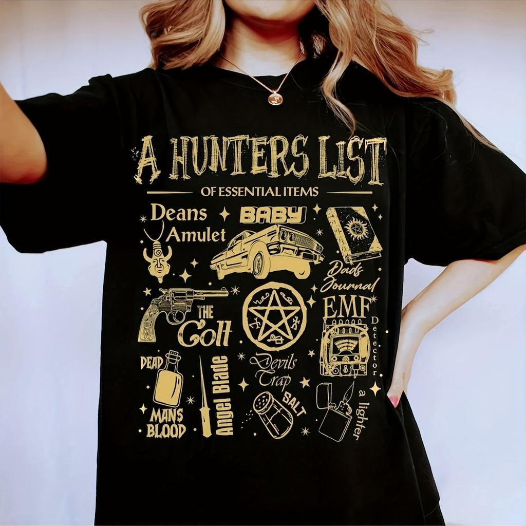 SupernaturalKoszulki Męskie Damskie Casualowa Koszulka z Krótkim Rękawem Czarna Luźny Krój 220gsm z Graficznym Nadrukiem z Serialu Supernatural