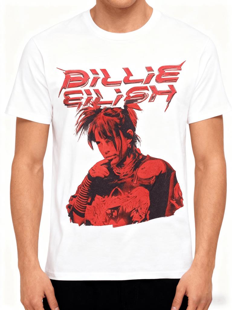 Billie Eilish Czerwony Portret Nadrukowany Casualowy Modny Letni T-shirt dla Mężczyzn i Kobiet Luźny Oversize Retro Czysta Bawełna