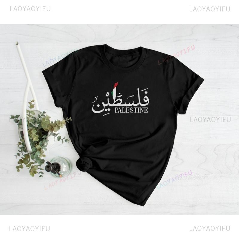 Palestyńska Kaligrafia Arabska Koszulka Mapa Palestyny Nadruk Flagi T-shirt Casualowa Moda Harajuku Streetwear Lato Unisex T-shirt