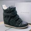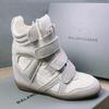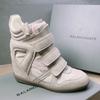 Autumn and Winter Velcro Couples Genuine Leather Dad Shoes High-top Color-blocking Sneakers Women's Inner Height Increase 8cm Casual Shoes