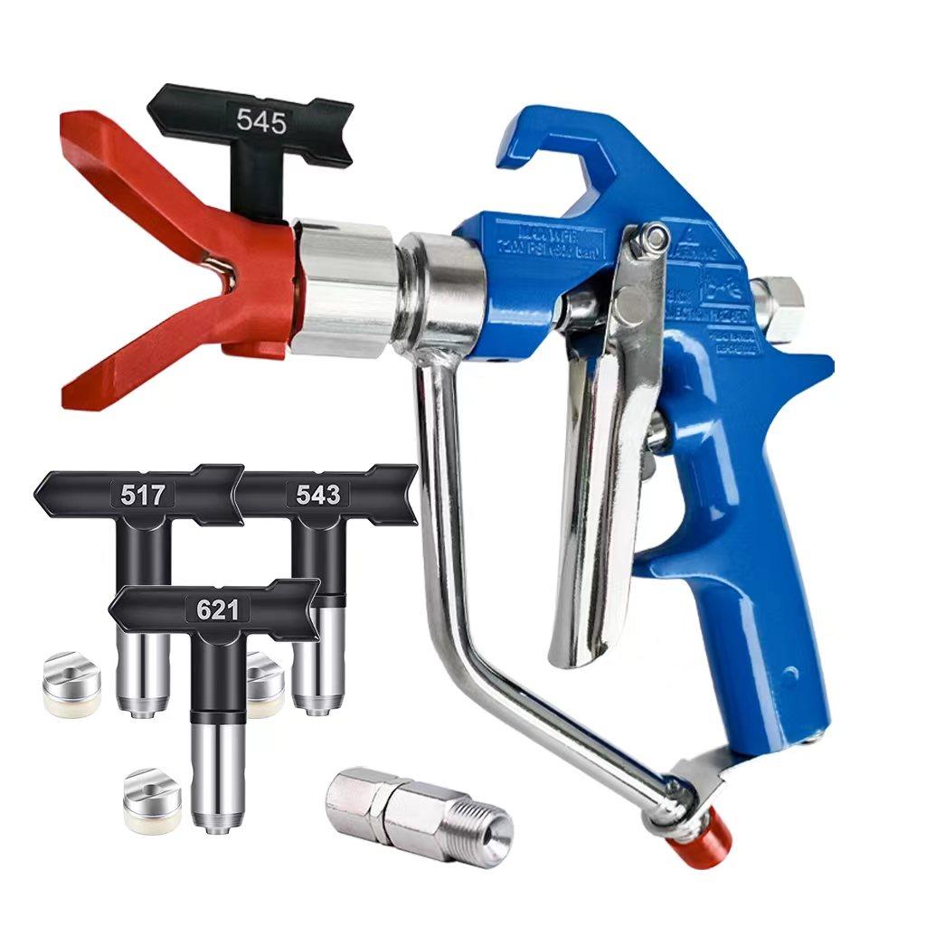 1 Set 5000 PSI Silver Airless Paint Spray Gun with Tip Guard, 1/4 F to 3/8 M connector and 517 ,543,545,621 Spray Tip