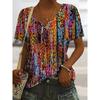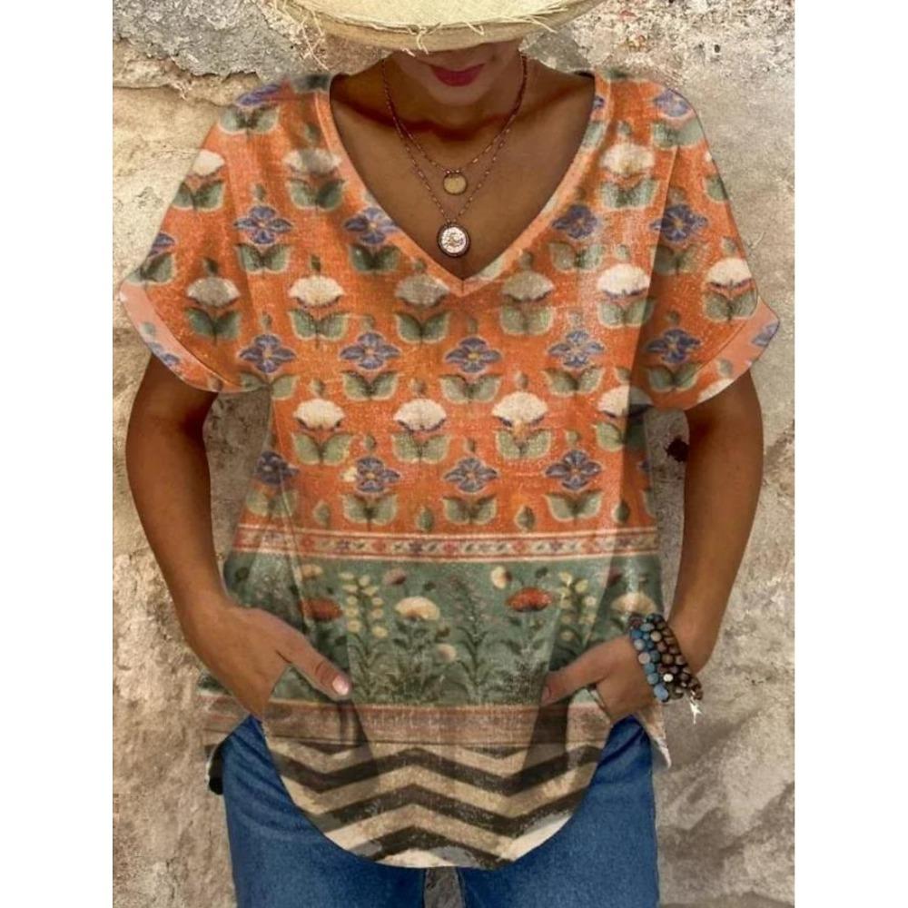Etniczna Damska Koszulka Vintage Kwiatowe Grafiki Modna Krótki Rękaw Dekolt V Regularne Topowe Codzienne Koszulki z Nadrukiem Letnie Codzienne Topowe