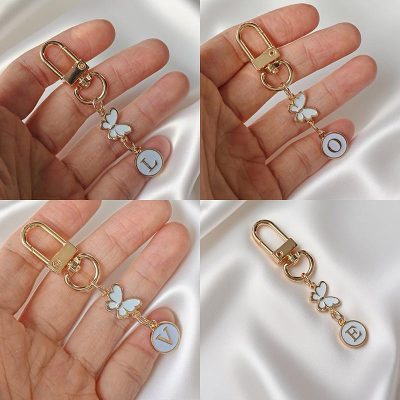 Metalowy Brelok z Literą Motyla A-Z 26 Liter Brelok Urok Uchwyt na Klucze Samochodowe Zawieszka do Torby Akcesoria Biżuteria Prezent