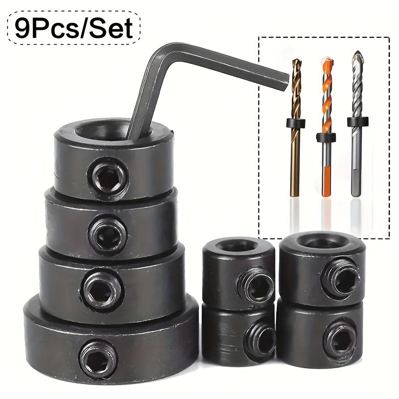 Zestaw 9 szt. Pozycjonerów do wierteł stolarskich 3mm-16mm Regulowany ogranicznik głębokości wiercenia z kluczem sześciokątnym Idealny