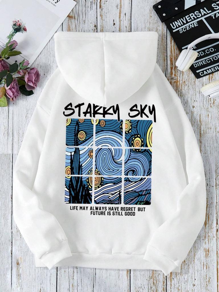 Beautiful Night Sky Graffiti Printing Hoody Women Harajuku Soft Sweatshirt Fashion Warm Hooded Autumn Fleece Casual Clothes Top