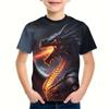 3D Dragon Pattern Boys' T-shirt Children's Round Neck Short Sleeve Cartoon Animal Top T-shirt
