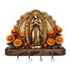 Płaski wieszak na klucze na ścianę 2D Matka Boska Dom na wsi Religijna sztuka ścienna z 4 metalowymi haczykami do przedpokoju, korytarza Rustykalne chrześcijańskie prezenty dla rodziny i przyjaciół