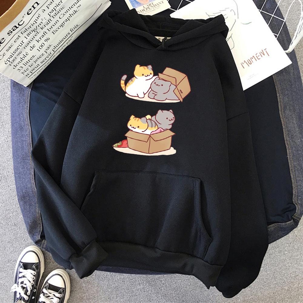 Two Cute Cats Playing Hide And Seek In Printed Boxes Men's Hoodies Fashion Autumn Vintage Sweatshirt Simple Casual Long Sleeve