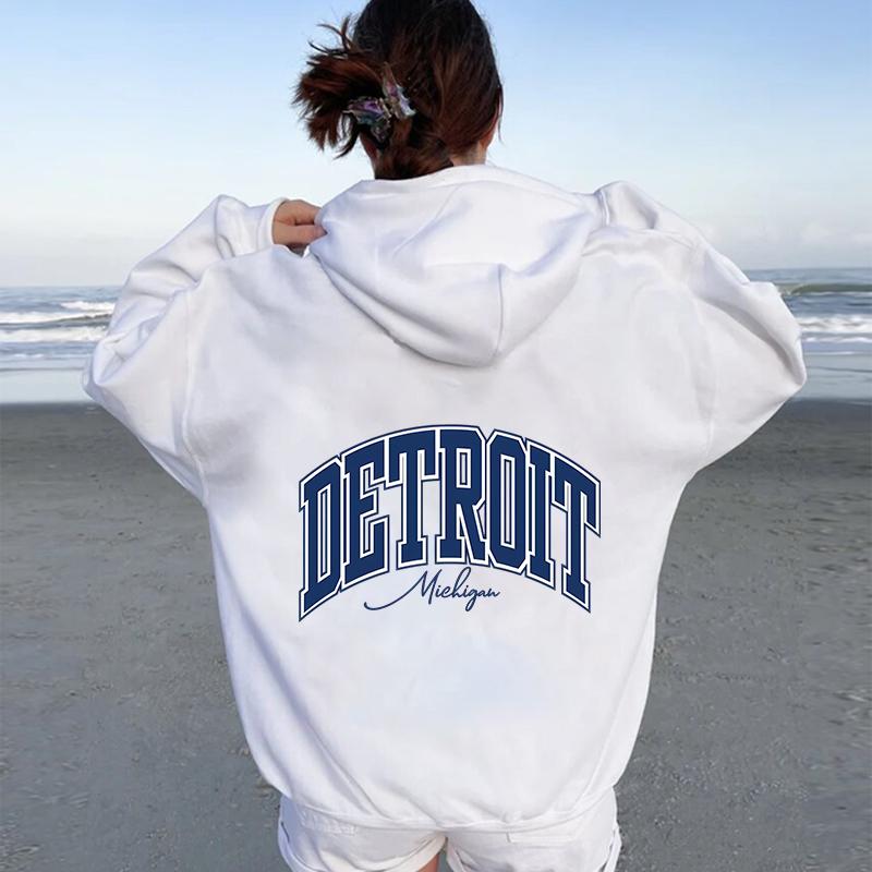 American Retro DETROIT Letter Print Hoodies For Men Women Harajuku Pullover Clothes Hip Hop Y2k Long Sleeve Pullover Sweatshirts
