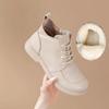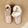 Cholewka buta wykonana jest z syntetycznej skóry i materiału odpornego na zabrudzenia, z wodoodporną powierzchnią, która jest odporna na deszcz i śnieg. Część materiałowa poprawia cyrkulację powietrza, zapobiegając dyskomfortowi i duszności. Konstrukcja buta jest luźna i umiarkowana, zapewniając ciepło bez wrażenia objętości. Wysoka cholewka przylega do kostki, ograniczając wnikanie zimnego powietrza, a ukryta struktura wzmacniająca pięty poprawia stabilność podczas chodzenia.