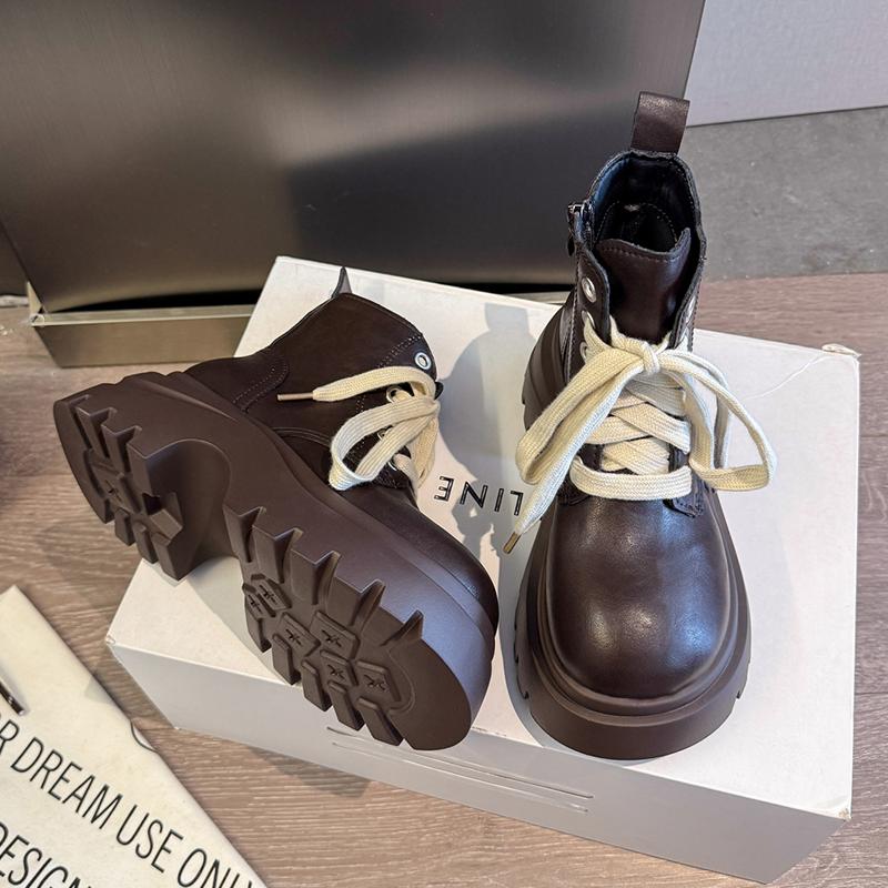 Flats Ankle Boots for Women Platform Lace Up Shoes Winter Designer Sport Sneakers New Walking Comfort Leather Ladies Boots