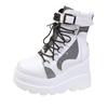 Cholewka buta wykonana jest z syntetycznej skóry i materiału odpornego na zabrudzenia, z wodoodporną powierzchnią, która jest odporna na deszcz i śnieg. Część materiałowa poprawia cyrkulację powietrza, zapobiegając dyskomfortowi i duszności. Konstrukcja buta jest luźna i umiarkowana, zapewniając ciepło bez wrażenia objętości. Wysoka cholewka przylega do kostki, ograniczając wnikanie zimnego powietrza, a ukryta struktura wzmacniająca pięty poprawia stabilność podczas chodzenia.