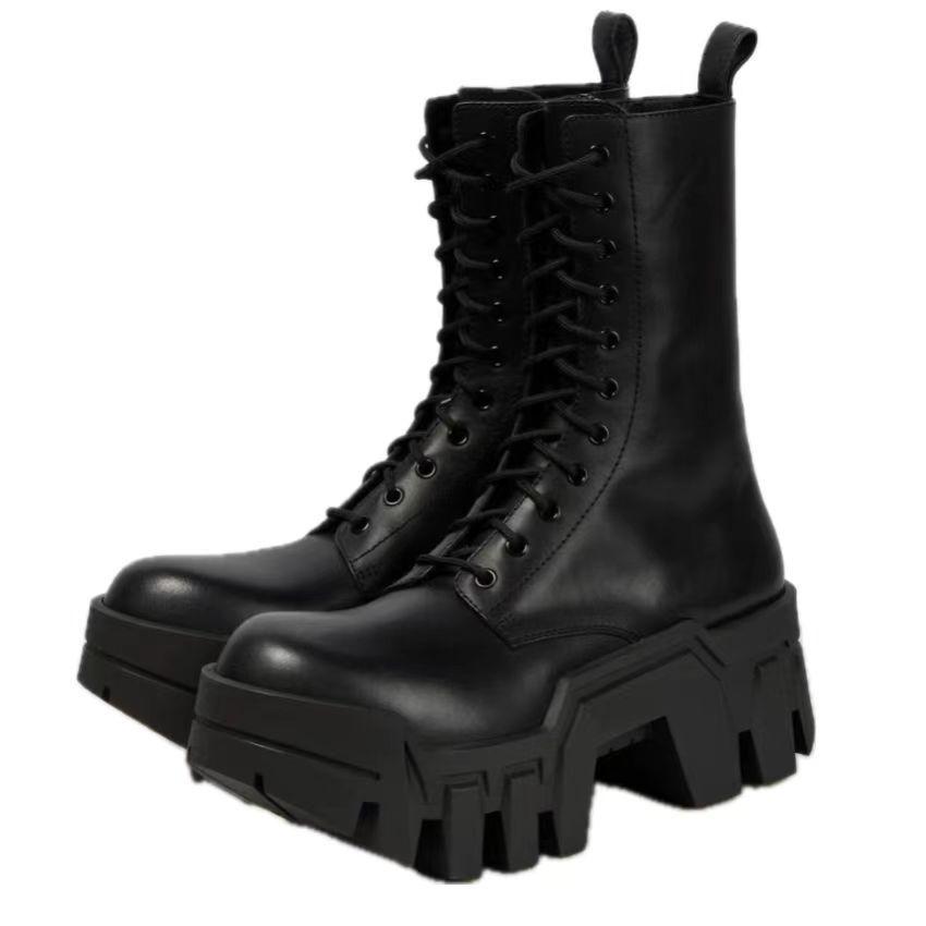 Męskie Buty Bulldozer Samochód Okrągły Nosek Gruba Podeszwa Wysokie Zwiększające Przekładnia Dół Chelsea Motocyklowe Trampki Buty