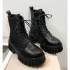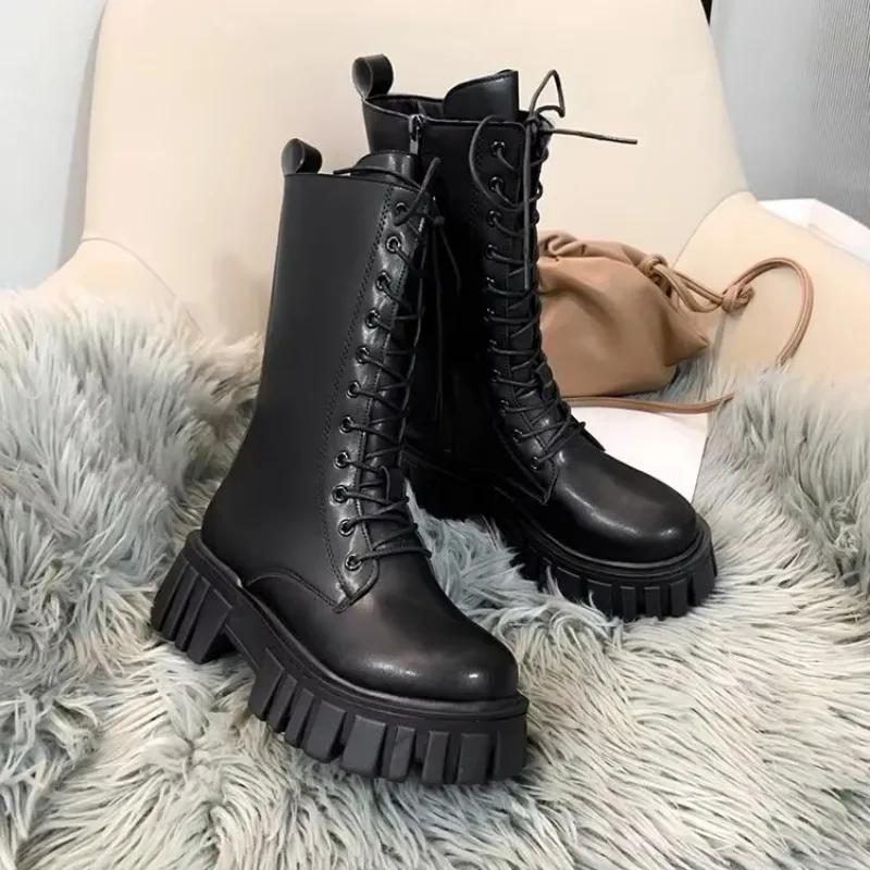 Buty zimowe damskie Nowe brytyjskie buty damskie Gruba podeszwa Mid-calf Botki na grubym obcasie Casualowe botki do kostki dla kobiet