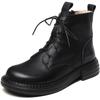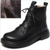 Zimowe Ciepłe Botki Damskie Sznurowane Okrągły Nosek Płaskie Botki do Kostki Ręcznie Robione Retro Prawdziwa Skóra Bydlęca Boczne Zapinanie na Zamek Błyskawiczny Pluszowe Bawełniane Buty