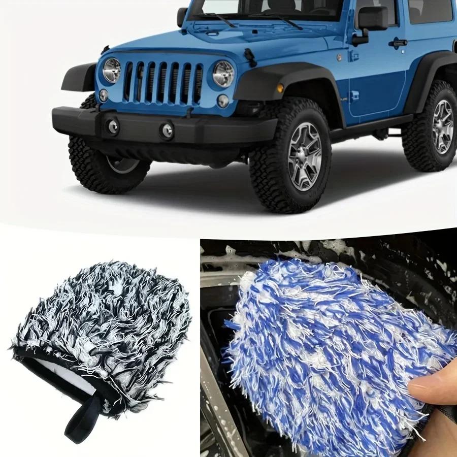 Lucullan Two-sided Microfiber Wheel Detailer Wash Glove Super Soft Long Hair Car Detailing Pocket Mitt