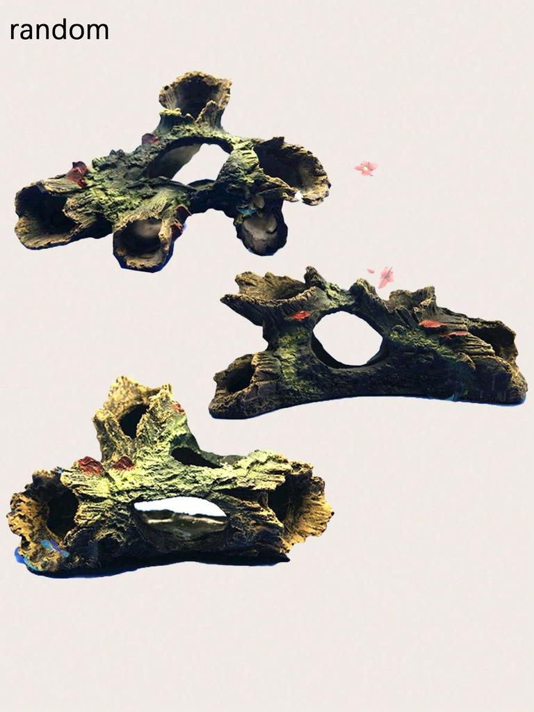 1 szt.-Dekoracyjne pnie drzew do akwarium, drewniane produkty do akwarium z otworami i kryjówkami, małe dekoracje żywiczne-losowe