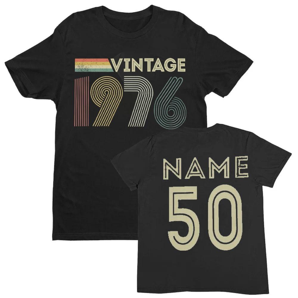 Koszulka na 50. urodziny z 1976 roku z personalizacją na 2026 rok. Pomysł na prezent z własnym imieniem. Letnie, oddychające koszulki. Nostalgia, retro.