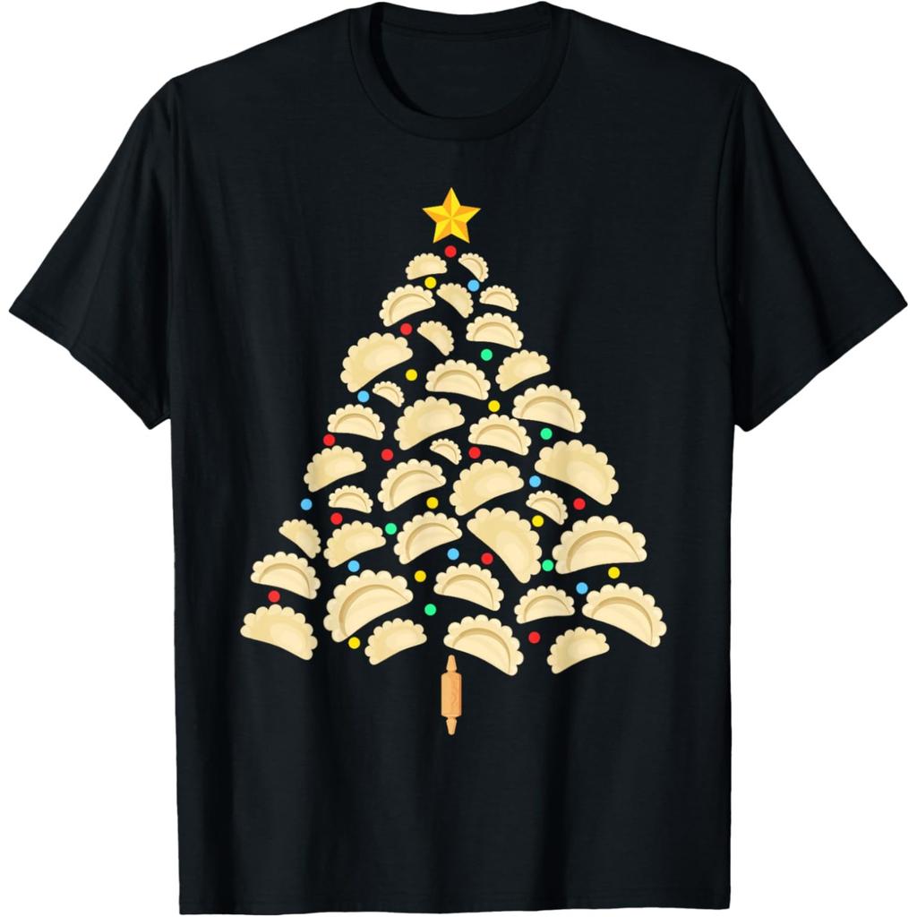 Pierogi Tree Polish Christmas Food Funny T Shirts Men Women Cotton Humor Streetwear Tee Shirt Short Sleeve Unisex Loose Clothing