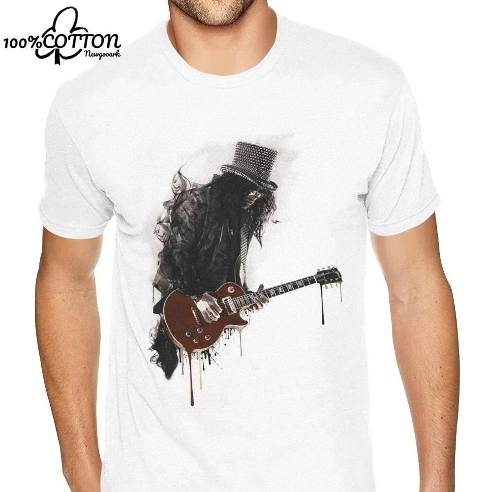 Męska Koszulka Retro Kawaii Gothic Style na Zamówienie Cool Slash Grający na Gitarze Zespół Muzyki Rockowej Gun N Roses T-shirt