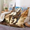 3D Cartoon Horse Print Flannel Throw Blanket – Soft Warm Picnic Blanket, Retro Home & Travel Birthday Gift, Cozy Comfort