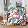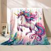 1 szt. Miękki i przytulny koc flanelowy - Wymarzony jednorożec, kwiatowa fantazja, z różowymi i fioletowymi kwiatami, jasnoniebieskim jednorożcem i pastelowym F