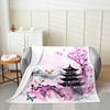 Japanese Throw Blanket Splash Red Cherry Blossom Gifts for Girls Women Men Boys Cozy Flannel Fleece Fuzzy Landscape Blankets