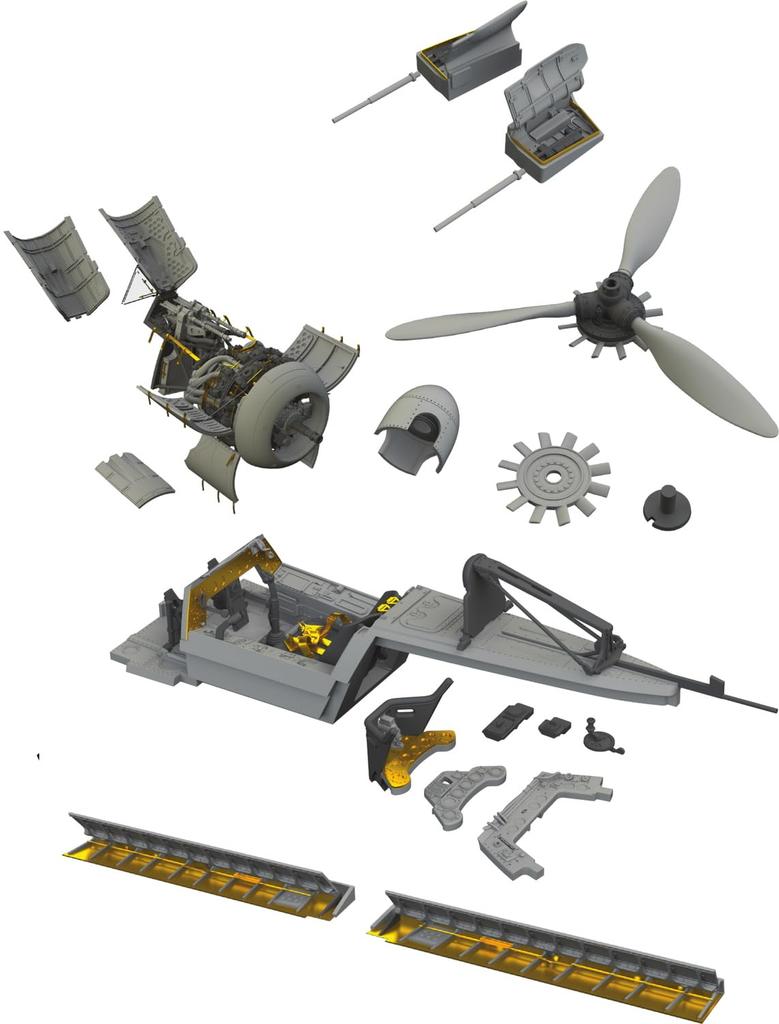 Contents: This set includes five parts: cockpit, engine, wing-root machine gun, propeller, and landing flaps.