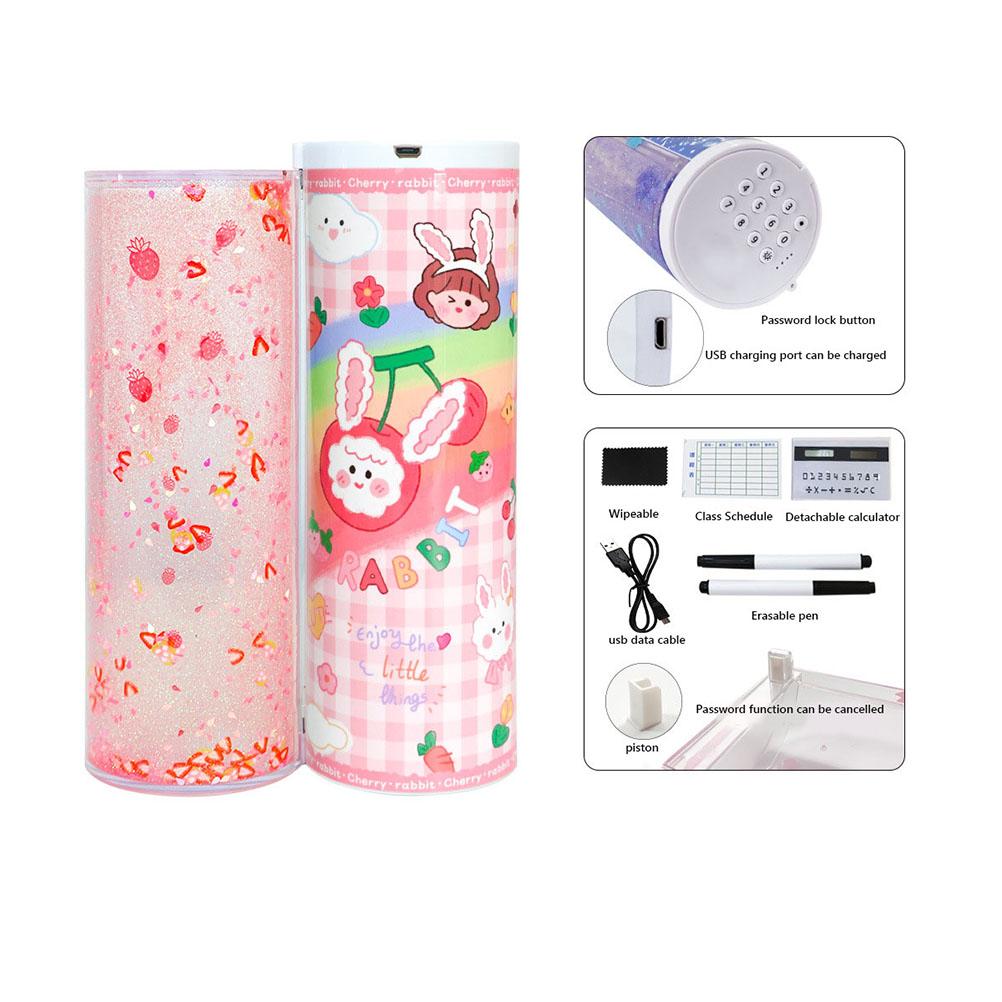 Quicksand Pencil Box Magnetic Clasp Exquisite Intelligent Password Quicksand Pencil Case with Calculator