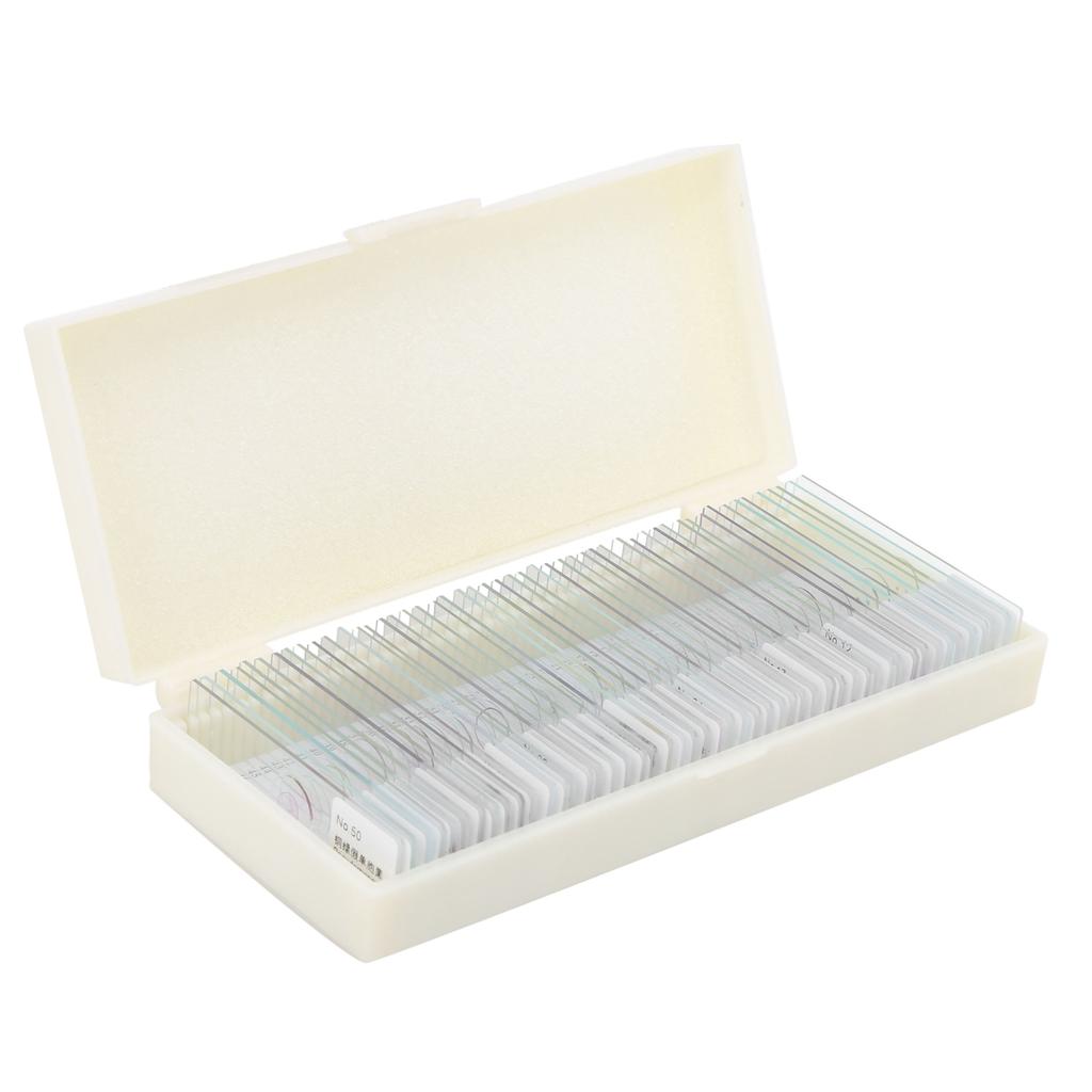 50 szt. Gotowe szkiełka mikroskopowe z próbkami mikrobiologicznymi w pudełku do przechowywania