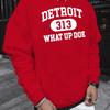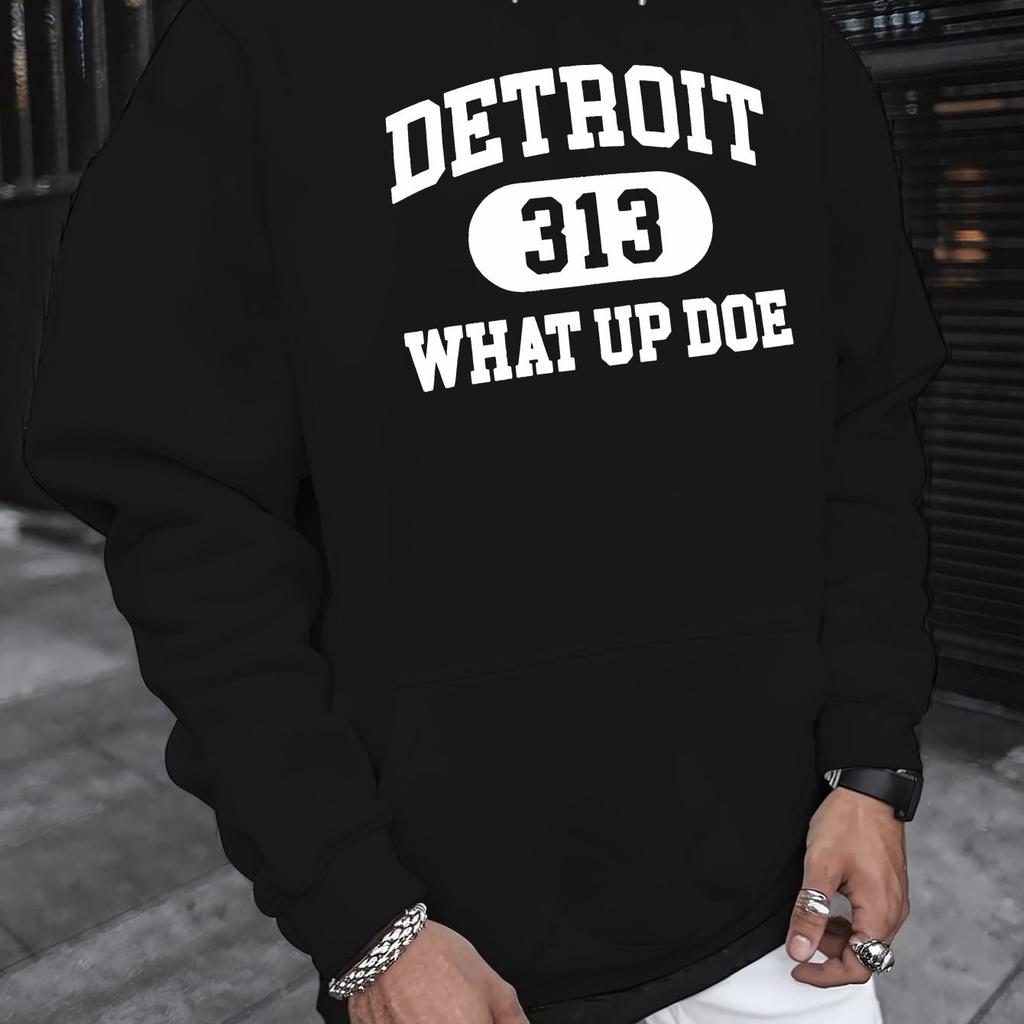 DETROIT 313 WHAT UP DOE Men'S Hooded Sweatshirt - Casual Long Sleeve, Printed Pullover for Autumn & Winter, loose Sweatshirts