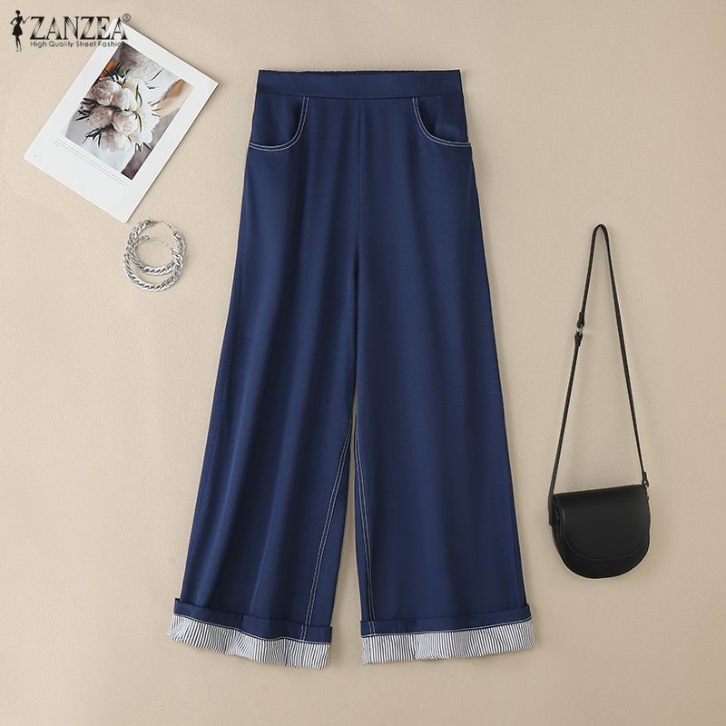 ZANZEA Damskie luźne spodnie z szerokimi nogawkami w jednolitym kolorze