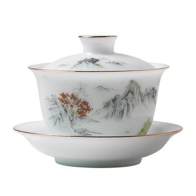 Ręcznie malowana Gaiwan Wysokiej klasy ceramiczna miseczka do parzenia herbaty Jingdezhen Filiżanka do herbaty z pokrywką i spodkiem Gai Wan Shen Puer Filiżanki bulionówki