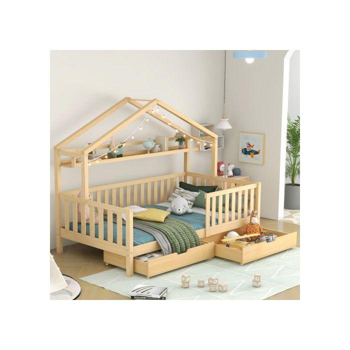 Łóżko dziecięce - MUVOE - 90x200 cm - Lite drewno - Szuflady do przechowywania - Styl skandynawski