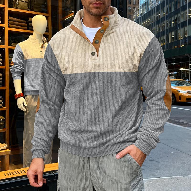 Outdoor Men's Casual Loose Ami Khaki Corduroy Henry Contrast Color Commuting Sweatshirt