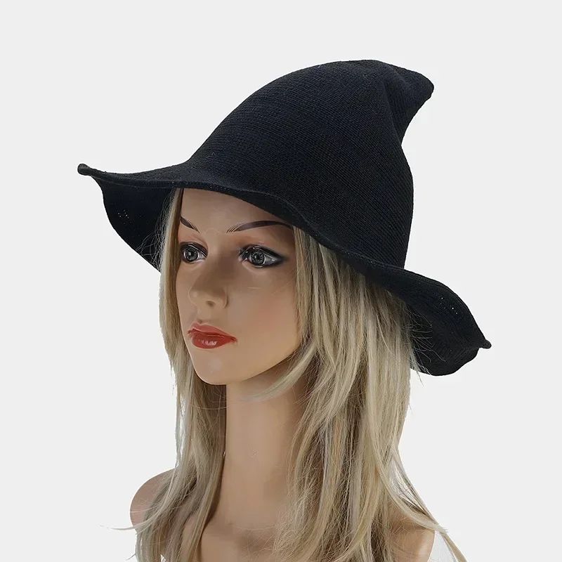 Woolen Witch Hat Halloween Witch Hat Pointed And Large Brimmed Knitted Foldable Witch Hat Party Role-Playing Witch Decoration