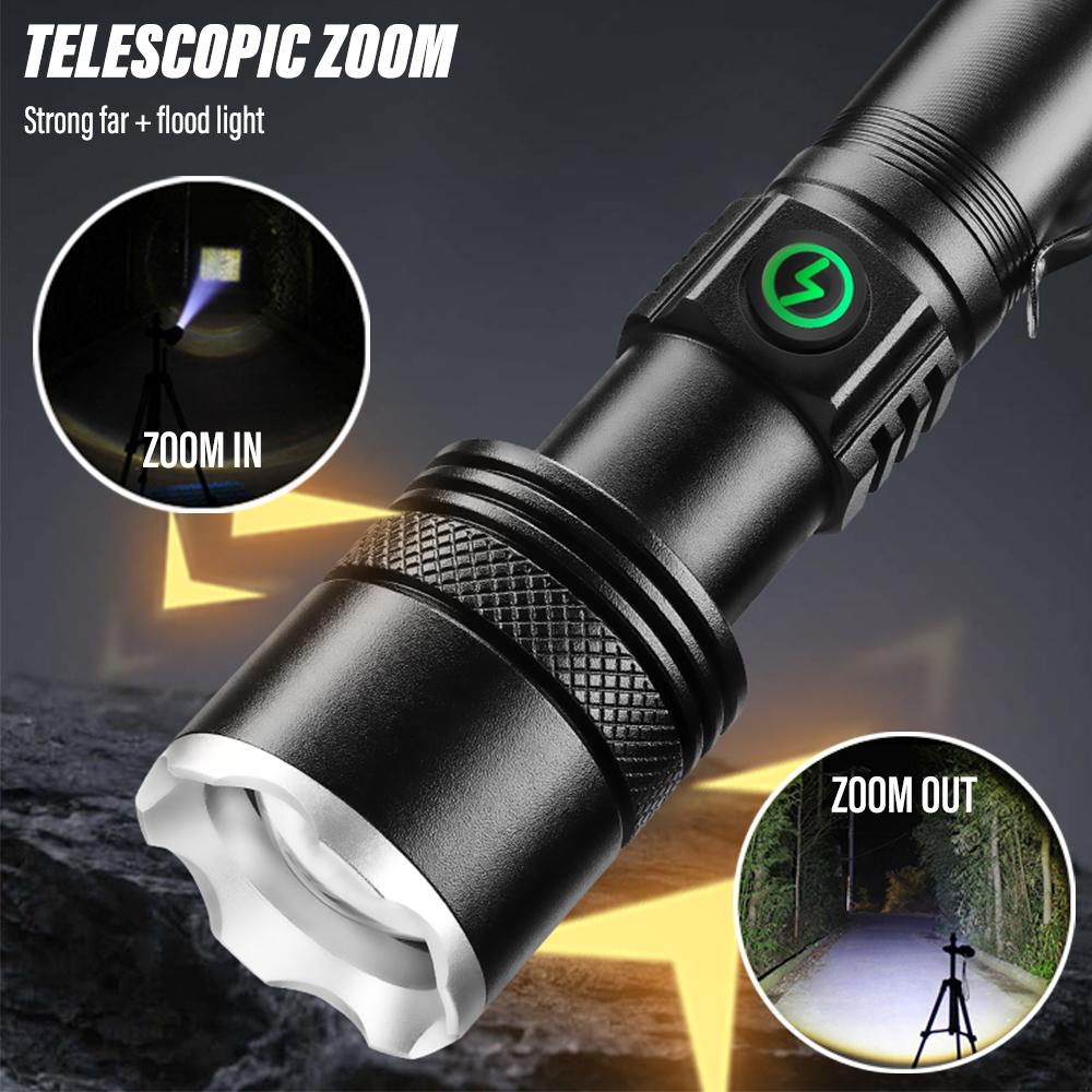 Super Bright LED Flashlight Rechargeable Torch Portable Work Light Outdoor Camping Light with Telescopic Zoom