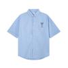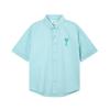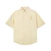 AMI Men's Classic Autumn Chest Same Color Heart Embroidered Casual Cotton Solid Color Short Sleeved Shirt