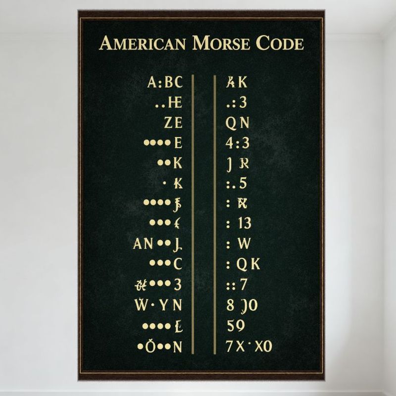 Amerykański Kod Morse'a Vintage Edukacyjny Znak Blaszany, Retro Dekoracja Ścienna do Domu Biura Jaskini Mężczyzny, Tabela Alfabetu Kodu Morse'a